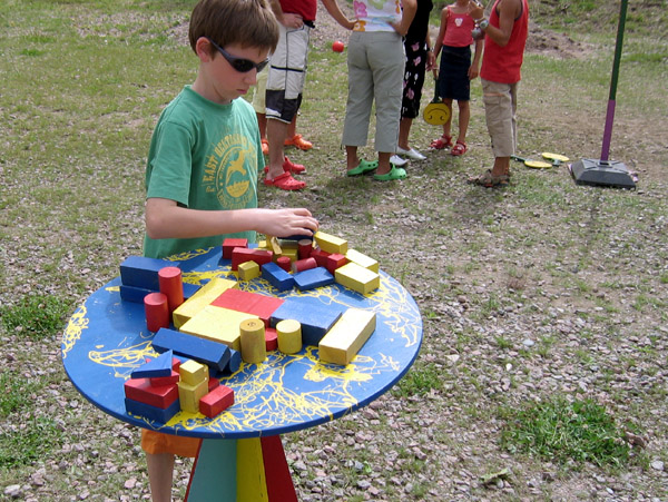 Das Spiel kann auch umgekehrt gespielt werden: Gemeinsam werden alle Teile wieder so auf der Scheibe verteilt, dass die Balance gehalten wird.