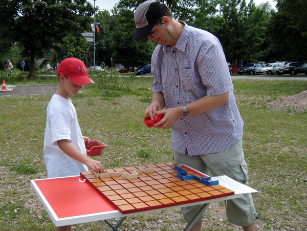 Wer zuerst auf der anderen Seite ankommt, hat das Spiel gewonnen.