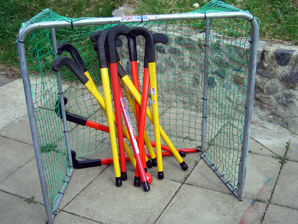 12 Schläger, 2 Tore und ein Ball