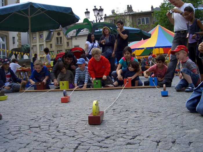 5 Tiere müssen von den Kindern ins Ziel "gekurbelt" werden.