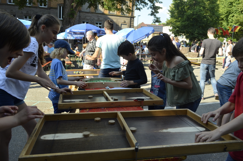 Bei diesem Spiel versucht ihr eure drei Spielsteine durch das „Tor“ auf die andere Seite zu schießen. Die Spielsteine werden mit dem Gummi rübergeschossen (Zeige-, Mittel- und Ringfinger auf den Stein legen, dann die Hand mit dem Stein zurückziehen, so dass das Gummi sich spannt und schließlich loslassen – schon "schießt" der Stein los).