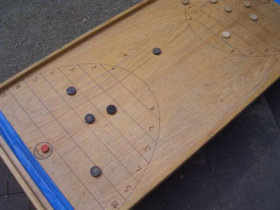 Zwei Personen stellen sich an die Enden des Spielbretts. Die jüngere Person schiebt mit der Hand einen Spielstein an und versucht, den Stein auf der gegenüberliegenden Seite auf einem Feld mit möglichst hoher Punktzahl zu platzieren. Wird der Stein zu weit geschoben und fällt in den Graben, ist er verloren. Es wird abwechselnd geschoben. Bleibt ein Spielstein auf dem Magoo-Feld liegen, darf mit dem roten