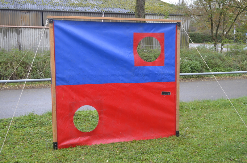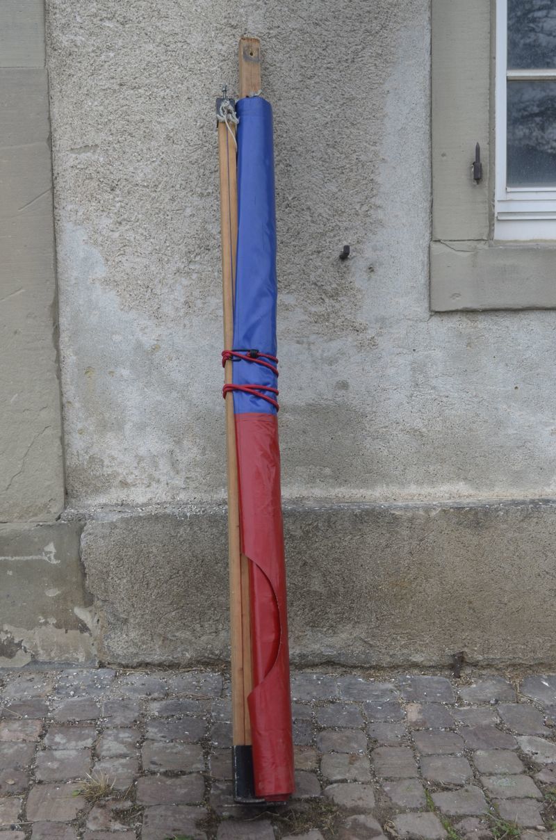 aus LKW-Plane, wird mit Heringen abgespannt.
