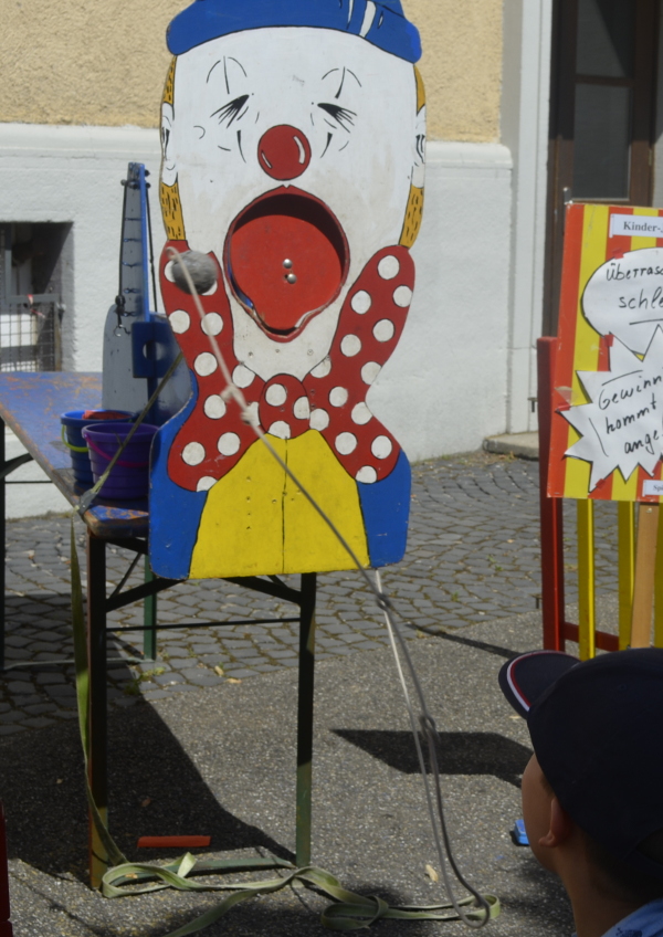 Triffst du dem Clown in den Mund, schleudert er dir eine kleine Überraschung entgegen.