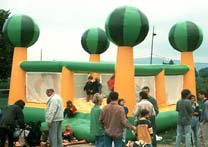 Mit den vier gestreiften Riesenbällen an den Ecken ist unsere Hüpfburg schon von weitem zu sehen; ein echter Blickfang . Wichtig für uns bei der Durchführung ist, dass jedes Alter zum Zuge kommt und vor allem die Kleinen nicht "untergehen". Deshalb organisieren unsere BetreuerInnen abwechselnd altersgetrennte Hüpfrunden.