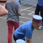 Aufgebaut wird ein Geschicklichkeitsparcours und die Kinder melden sich in Zweierteams beim Rennbüro an. Helm auf; Start frei. Ein Kind lenkt, das andere schiebt, zwischendrin ist Fahrer*innenwechsel.
