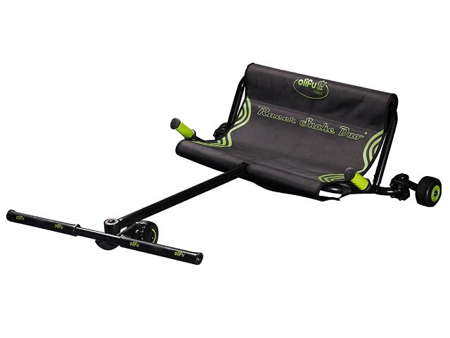 Dreirad, bei dem vorne einer lenkt und der andere hinten draufsteht, wie bei einem antiken Streitwagen