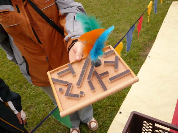 Aus Federn, Gummischlauch, Nägeln und Luftballon entstehen schnell einfache Indiacas, die gleich einsatzbereit sind. Indiacas werden mit der Hand gespielt oder geschlagen, ähnlich wie beim Federball nur ohne Schläger. Es ist ein altes indianisches Wurfspiel.