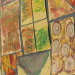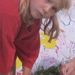 Auf Holzrahmen gespannte Leintücher werden mit unterschiedlichen Techniken gestaltet. Hände und Füße aufmalen, freies Malen, abstrakt...