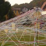 Aus Schnüren und Wolle entsteht ein Netz von 20 bis 30 Metern Durchmesser, in das die Kinder einen selbst gestalteten Wunschzettel hängen können.