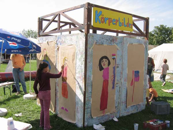 Wie ist mein Körperumriss, wie groß bin ich und wie will ich diese Umrisse gestalten? Diese Fragen stehen hinter dieser Malwerkstatt. Die Kinder helfen sich gegenseitig, ihre Umrisse aufs Papier zu bringen und dann kann jeder sein Konterfei nach Belieben und eigenen Vorstellungen ausmalen und gestalten.- Die einzelnen Bilder können nachher an einer Wand aufgehängt werden. So entsteht ein Gesamtkunstwerk.