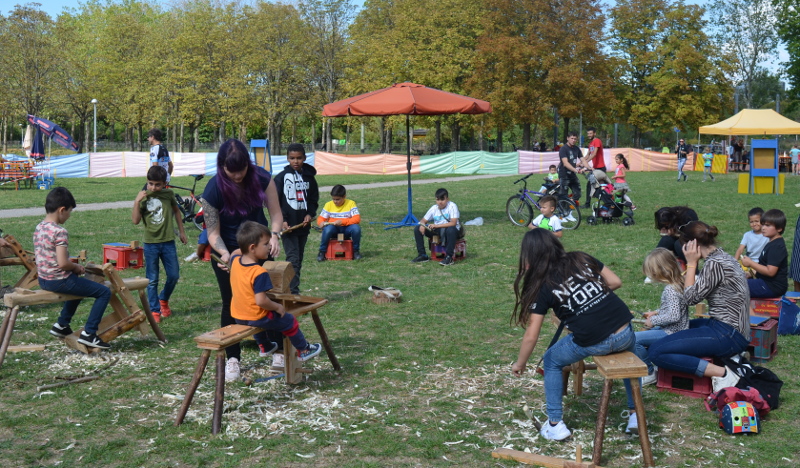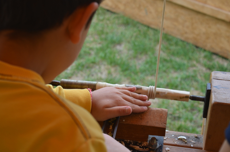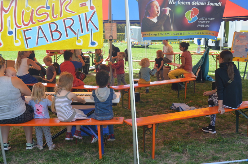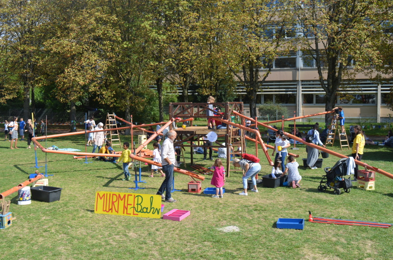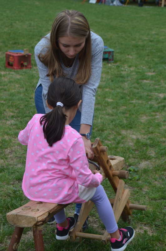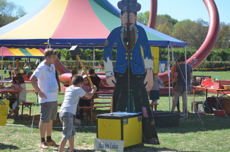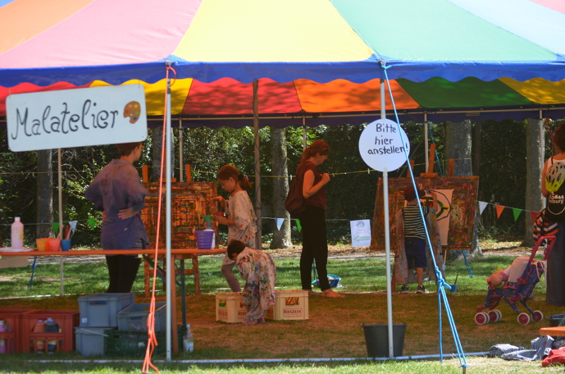 Schwerpunktprogramm am Dienstag und Mittwoch war die Grünholzwerkstatt, Donnerstag und Freitag der Kinderjahrmarkt. Dazu kamen tägliche Kreativangebote wie zum Beispiel das Malzelt und das Musikzelt, Bewegungsangebote unsere Riesen-Murmelbahn und ein offener Spielbereich.