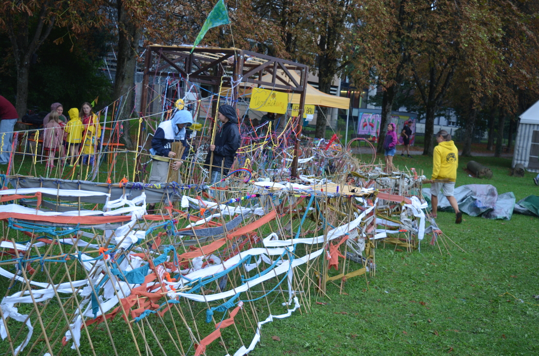 In diesem Jahr gab es 16 offene Werkstätten, die sich überwiegend mit dem Thema Raum beschäftigten: Experimente mit der Lochbildkamera, verstrickte Fadenreiche, versteckte Camouflagen, eine kreative Textilwerkstatt, malerische Unterwasserwelten, Stadtvisionen aus Ton, ein fantastischer Wohnturm, Labyrinthe, Planetenmobilés, prächtige Farbräume, eine Druckwerkstatt, Naturexperimente, Collagen, ein Musikzelt und eine Schreibwerkstatt der anderen Art angeboten. Zudem konnten im Malzelt weitere Fantasien ins Bild gesetzt werden.