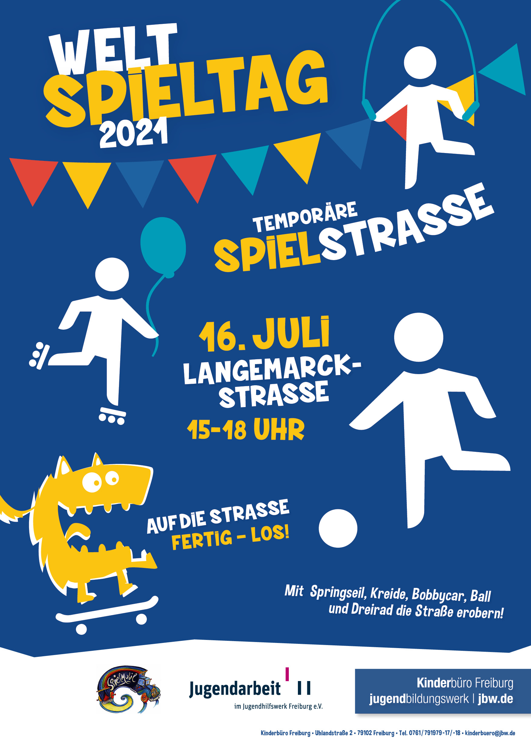 Seit 2021 führt das Kinderbüro Freiburg als „Wander-Spielstraßen“ bezeichnete Aktionen durch, seit 2022 gemeinsam mit dem Spielmobil. Für einen Nachmittag werden Straßen zum Spielraum: www.jbw.de/wander-spielstrassen/