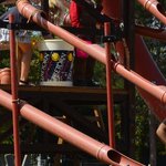 Ein System aus Röhren, aus denen eine große begehbare Murmelbahn entsteht.