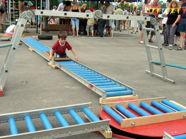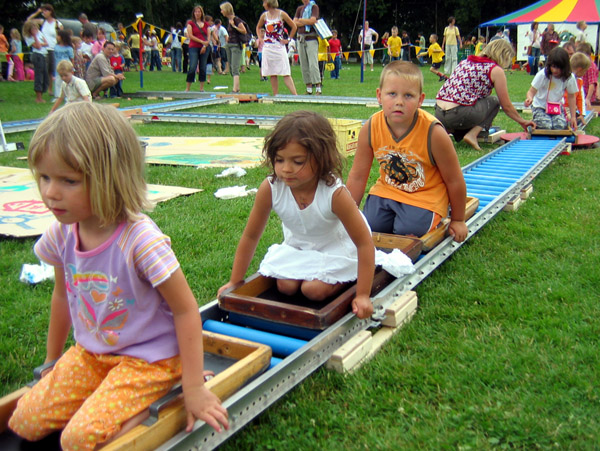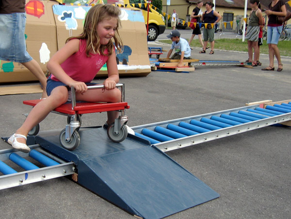 - Rutschbretter als Waggons.