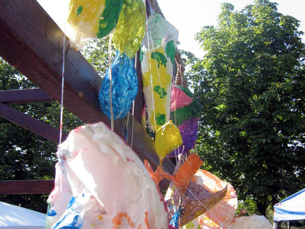 Kinder sind heute überwiegend Konsumenten kultureller Ereignisse, aber beim Kinder-Kunst-Spektakel können sie sinnlich gestaltend in einer fantasievollen Auseinandersetzung mit Materialien ihre eigene Kunst und Kultur sichtbar werden lassen. Die Kunstwerke der Kinder werden manchmal in einer kleinen Ausstellung der Öffentlichkeit präsentiert.