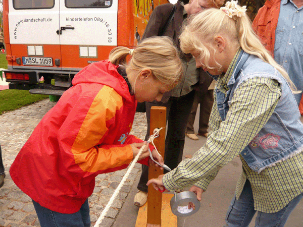 Hierbei werden sie nebenbei spielerisch in das alte Handwerk der Seilherstellung eingeführt