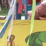 Die Kinder bauen sich diese farbenfrohen Flugobjekte selbst.