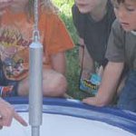 Der in einem Spiegel reflektierte Ausschnitt des Himmels wird von den Kindern nachgemalt