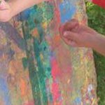 Mit Spezialfarben kann jedes Kind mit verschiedenen Techniken ein A 4 Blatt gestalten, das später Teil einer großen Collage wird