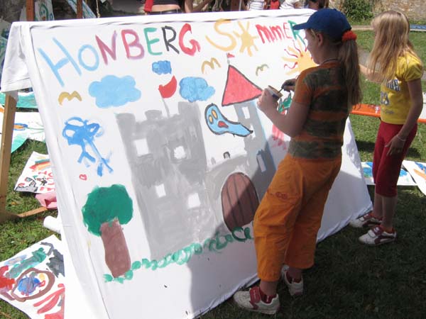Selten bekommen Kinder die Gelegenheit, an einer wirklich großen Leinwand zu malen und ihre Ideen umzusetzen. Hier können sie es. Und auch auf unterschiedlichste Art und Weise: Sehr beliebt ist es, wenn Kinder zuerst die Umrisse ihrer Hände oder Füße aufzeichnen und sie dann farblich gestalten. Am Schluss kann man ein großes, buntes Hand- oder Fußbild bewundern.