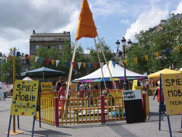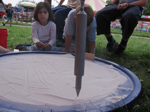 Hier entstehen vergängliche, aber sehr reizvolle Kunstwerke. Außerdem steht eher im Vordergrund der Entstehungsprozess, bei dem viele Kinder und Erwachsene zuschauen können.