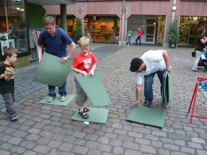 Bei der Freiburger Aktion stand der Gedanke im Mittelpunkt, das Spiel etwas generationsübergreifendes ist und an fast allen Orten mit einfachsten Mitteln gespielt werden kann.