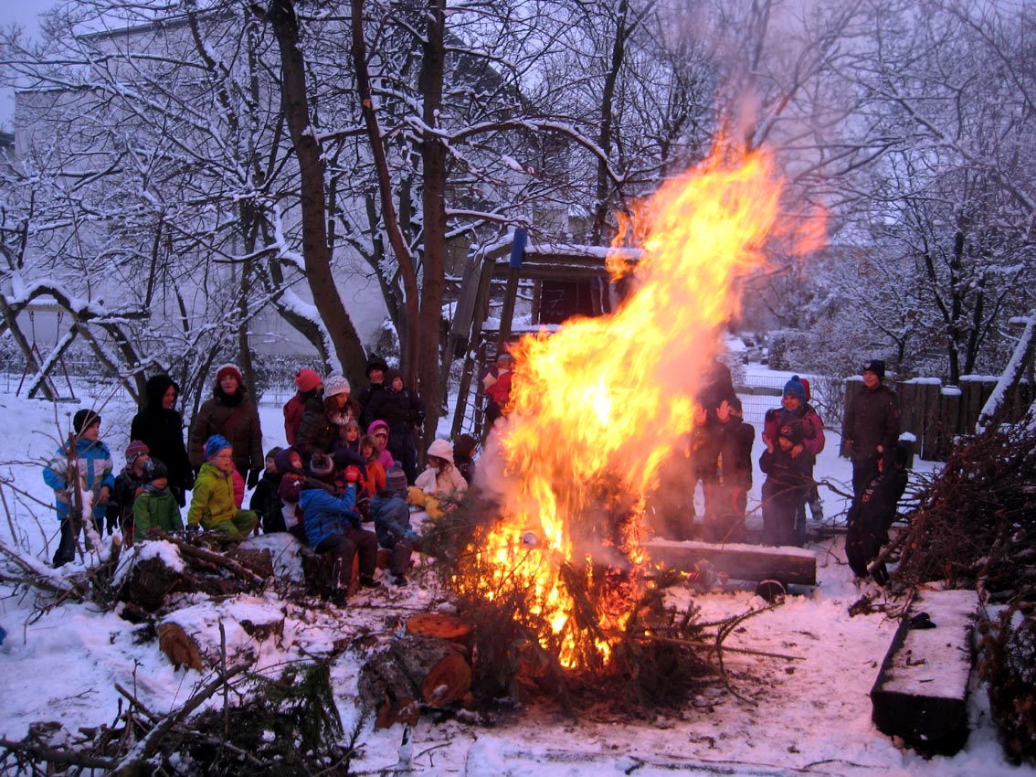 Hexenverbrennung zur Fasnet auf dem "Erlebnisspielplatz Blaues Monster" Zum Vergrößern Bild bitte anklicken