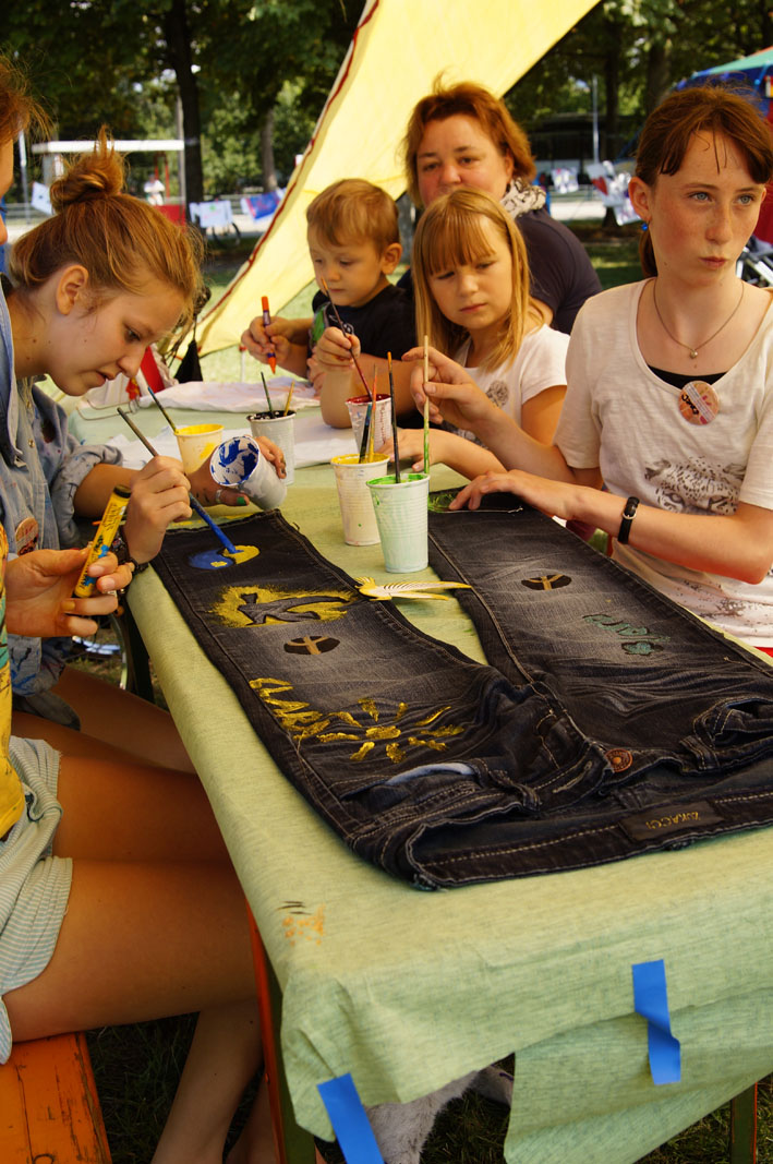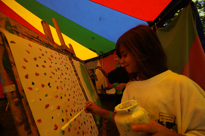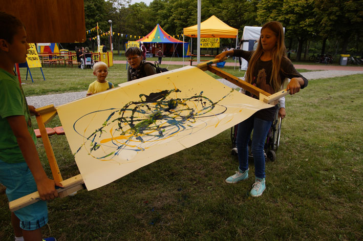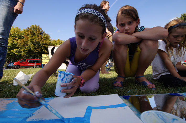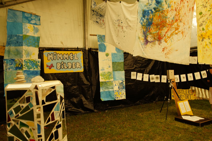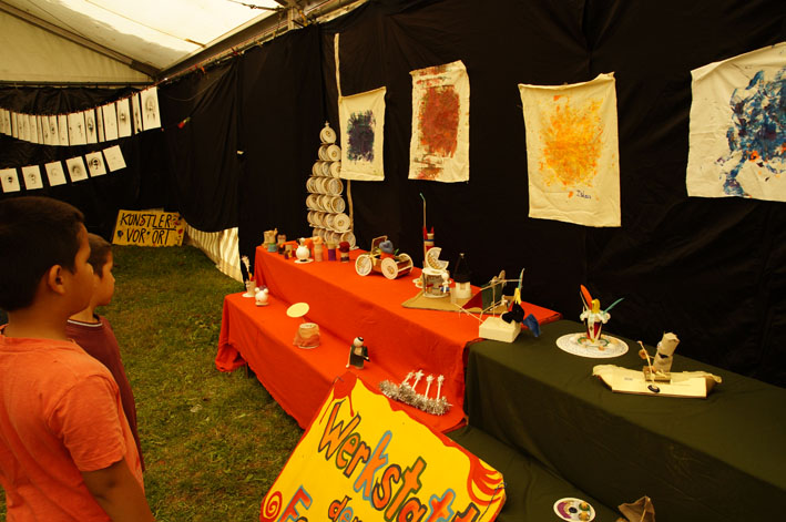 Wie immer gab es beim Kinderkunstdorf auch täglich die Standardangebote wie beispielsweise Kinderkunstcafe, Backmobil aus Weingarten, Malatelier, Malschaukel, Tonwerkstatt, Werkstatt der Fantasie, Tanz- und Musikangebote sowie die Spielkarre für alle, die nur mal Spiel und Bewegung brauchten.