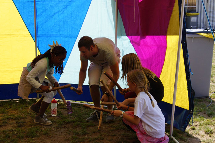 Es gab wieder einige interessante Gemeinschaftsangebote wie das bewährte Gestalten mit Naturmaterialien, auch „Landart“ genannt, das jeden Tag großen Zuspruch fand, bis das Material verbraucht war. Es musste mehrmals für Nachschub gesorgt werden.