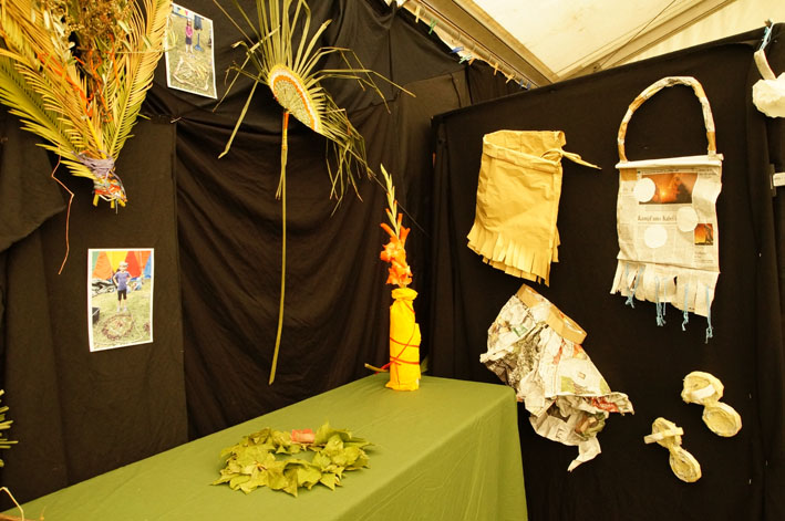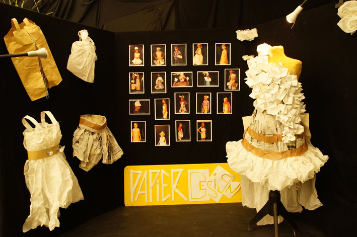 Mit einem ebenfalls vergänglichen und kurzlebigen Material, nämlich Zeitungen und anderen Papiermaterialien, gab es eine sehr schönes Projekt genannt „Papier Design“.