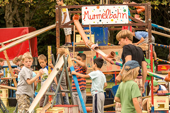 Theaterzelt, Tanzprojekt, Jonglierschule, Riesenmurmelbahn, Bewegungsbaustelle, Spiel-Arena, Wasserbaustelle, Brett-und Freispielbereich, Super-Wellenrutschbahn.