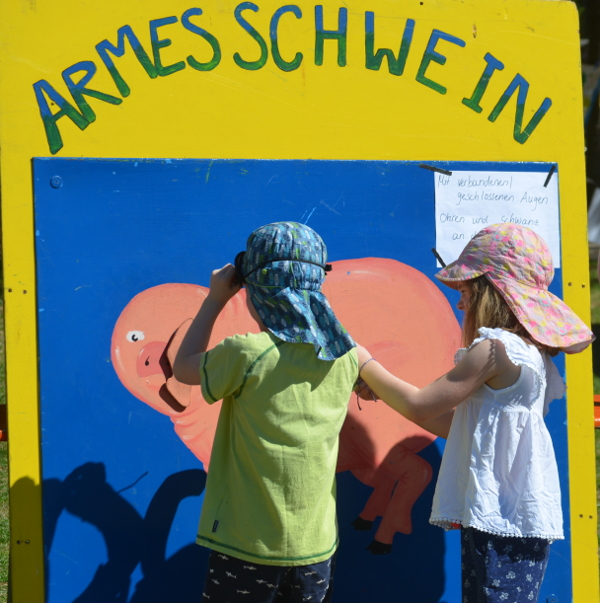 Schwerpunktprogramm am Dienstag und Mittwoch war die Grünholzwerkstatt, Donnerstag und Freitag der Kinderjahrmarkt. Dazu kamen tägliche Kreativangebote wie zum Beispiel das Malzelt und das Musikzelt, Bewegungsangebote unsere Riesen-Murmelbahn und ein offener Spielbereich.